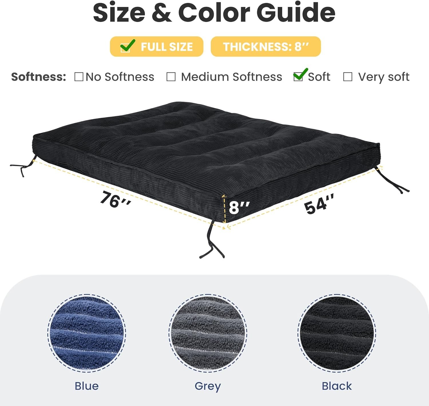 Perfect keywords for SEO: Japanese futon mattress, foldable floor mattress, 8-inch futon bed, full size floor mattress, guest bed futon, roll-up futon, OEKO-TEX certified mattress.